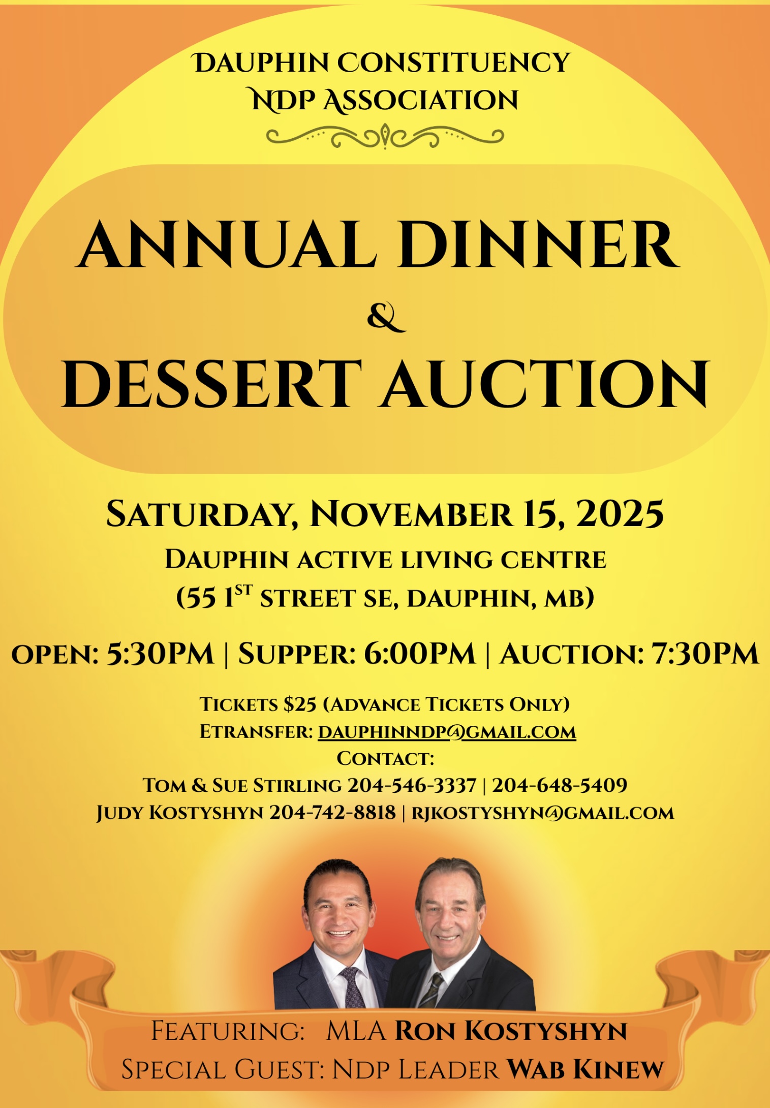 Dauphin NDP: Annual Dinner and Dessert Auction