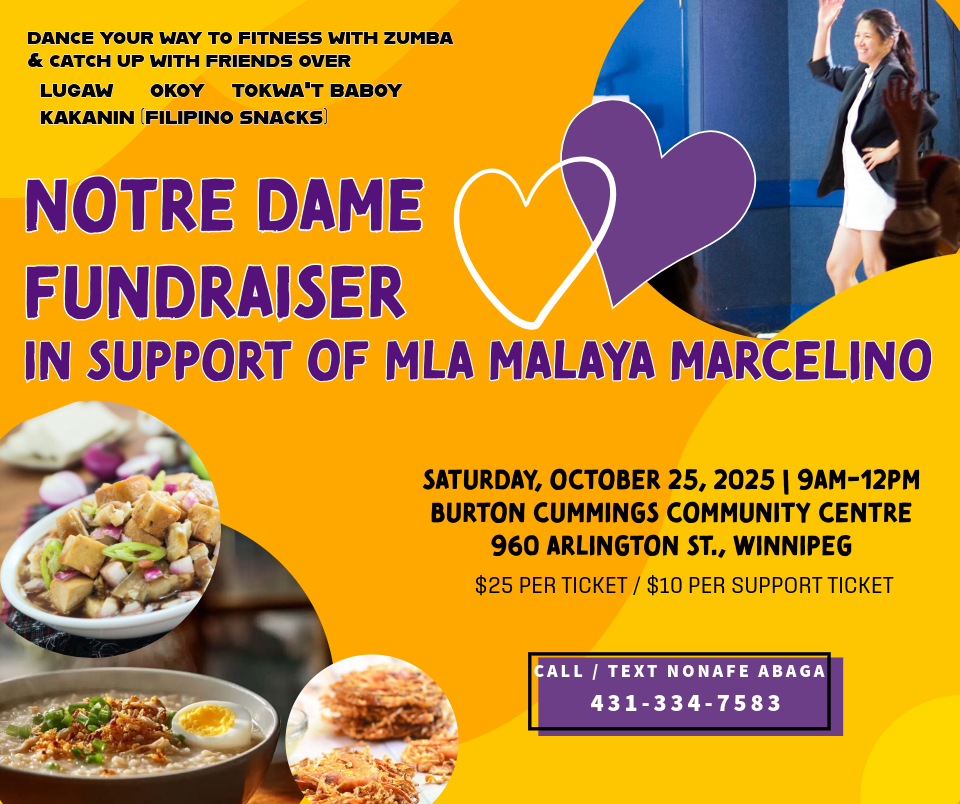 Join MLA Malaya Marcelino and the Notre Dame NDP while you dance your way to fitness on Saturday, October 25th!